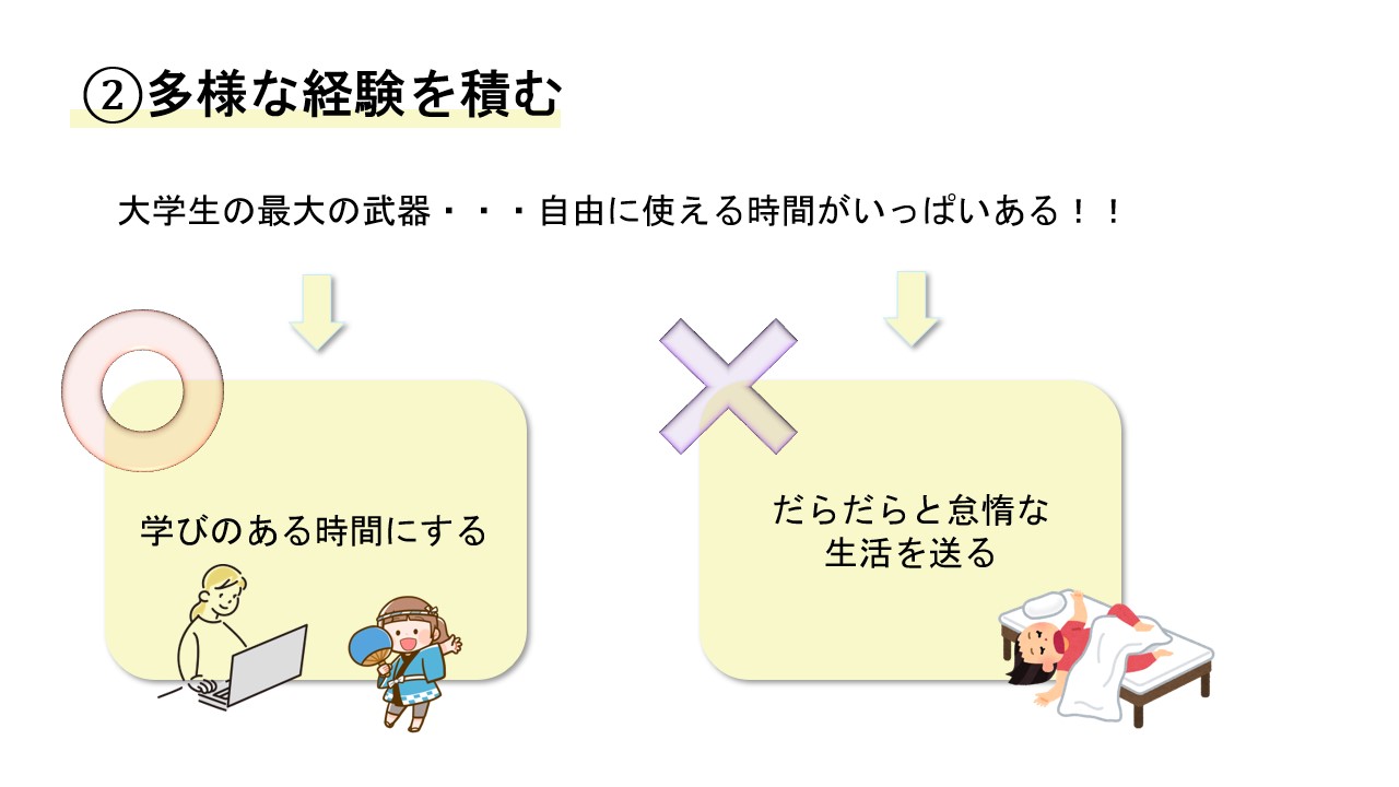 2つ目は多様な経験を積むことです。