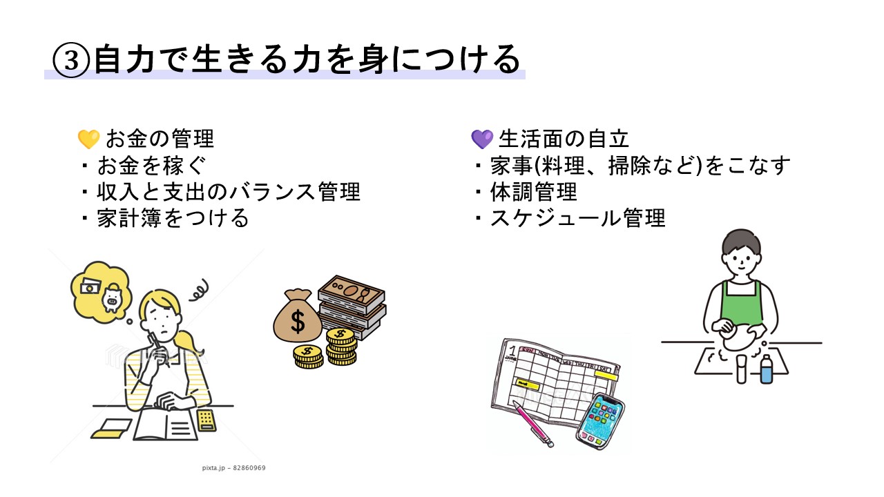 3つ目は自力で生きる力を身につけることです。