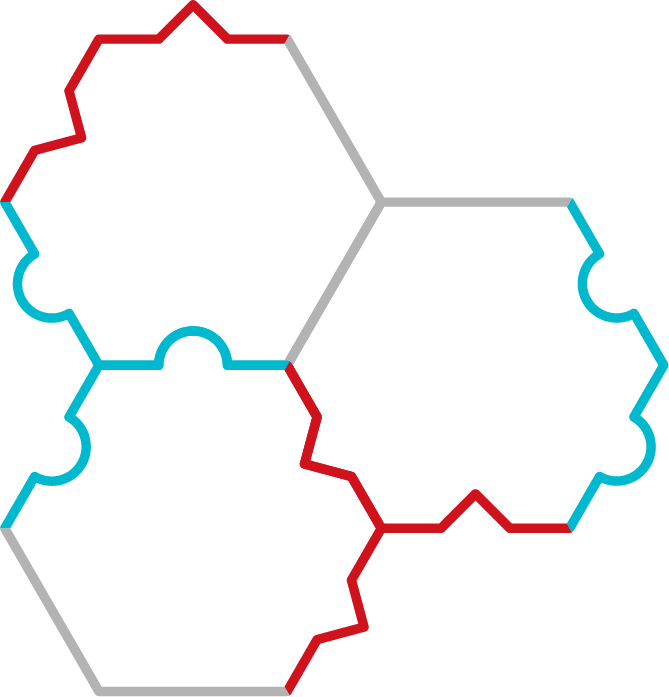 ②六角形をベースに2つの辺が噛み合って出来るパターンを鯛で作ってみようではありませんか。