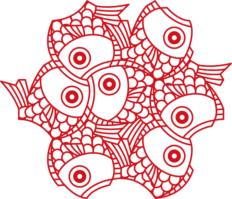 ①お祝い柄を色々作ってタオルと生地にしようと考えました。ポピュラーセレブレーションフィッシュでお馴染みの鯛をモチーフにエンドレスコングラチュレーションな柄を作るのに難儀したので、この制作過程をご紹介しちゃいます。
