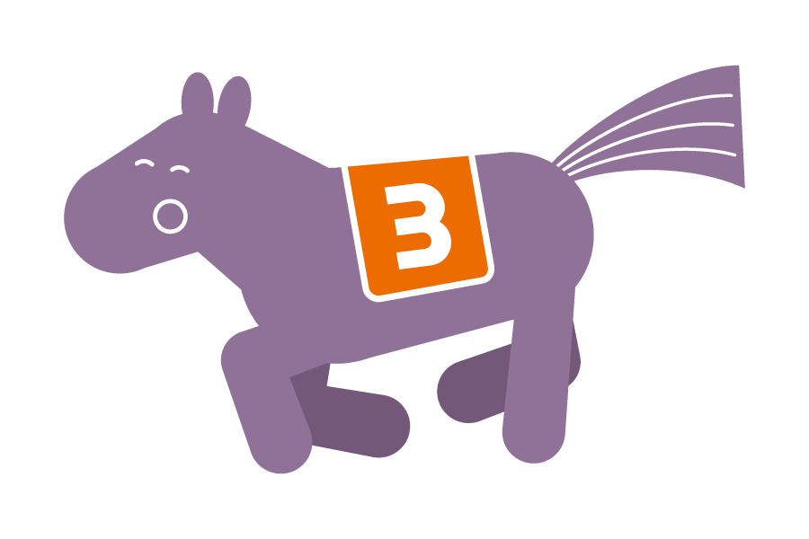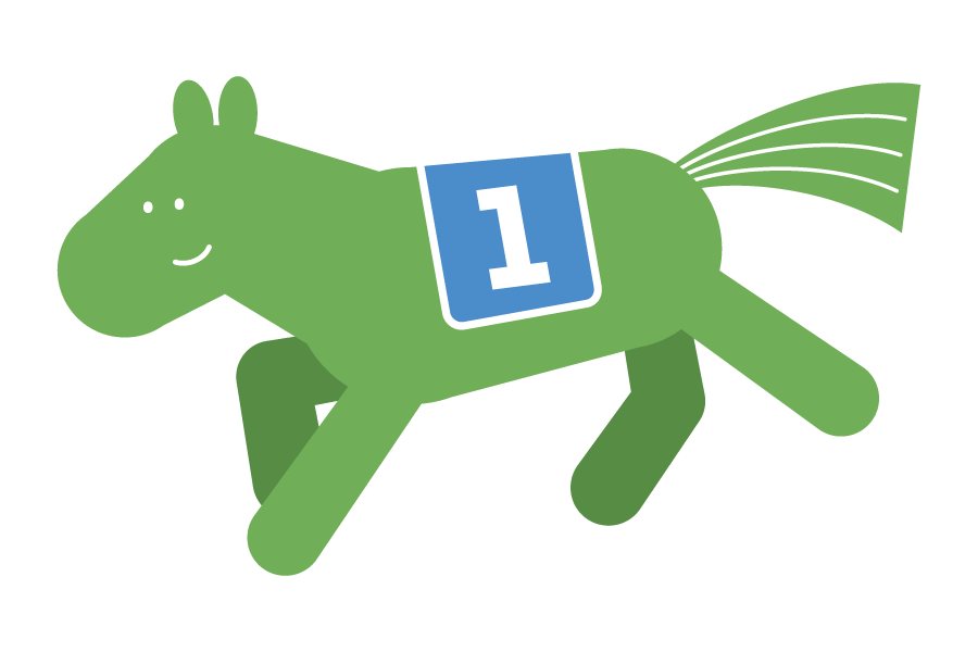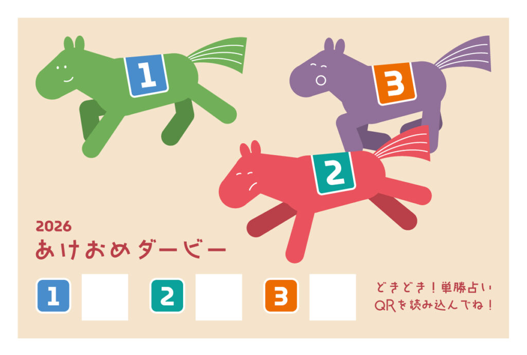 ③まずはざっくり構想と年賀状のデザインを考えます。3頭の馬の競走で占うおみくじにしてみましょう。ご覧の通り最初(1番)は騎手を描いていましたが、非常に面倒なので全馬空馬で頑張ってもらいます。大事件ダービーの幕開けです。